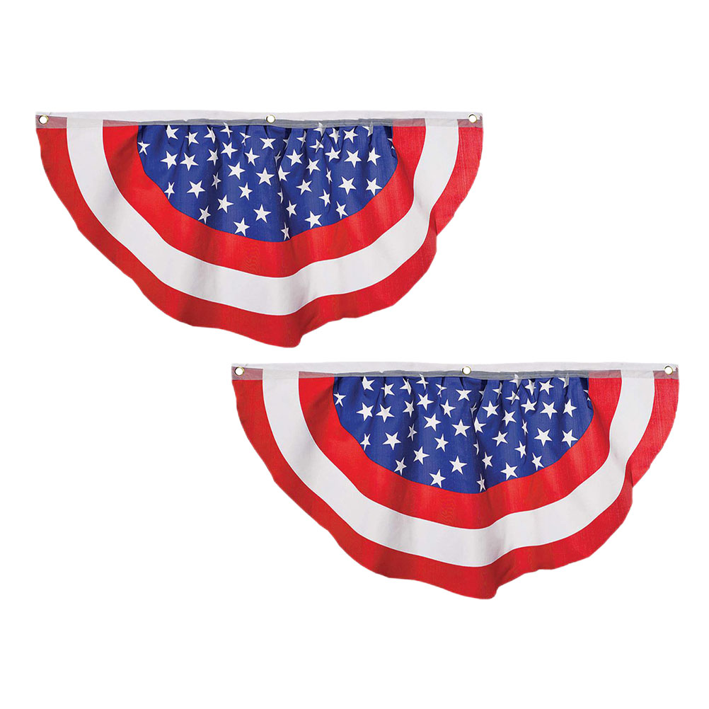 What sets our Patriotic Pleated Fan Flags apart is their combination of quality, design, and versatility. The premium polyester material ensures durability, while the vibrant and distinctive design captures the essence of American pride. The canvas header and brass grommets provide a secure and easy way to display the flags, making them a convenient and beautiful addition to your outdoor decorations. With these flags, you don't just decorate; you make a statement. The traditional colors and elegant pleated design will turn heads and create a memorable atmosphere for your celebrations. Whether you're decorating for a holiday or simply showing your love for the country, these fan flags are the perfect choice.