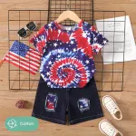 Make your toddler's Independence Day extra special with this adorable outfit. The 2pcs Toddler Boy Tie Dye Tee and Ripped Denim Shorts Set is a must-have for any summer wardrobe. Don't miss out on this stylish and comfortable set that will have your little one looking their best. Order now and let your child shine at the next celebration!