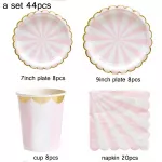 The **44pcs Multicolor Stripe Gold Foil Disposable Tableware Set** is perfect for any festive occasion. Whether you're hosting a grand wedding, a colorful birthday party, or an elegant holiday dinner, this set brings style and convenience to your event. The multicolor stripe design, paired with shimmering gold foil, ensures your table stands out and adds a festive sparkle to the atmosphere.