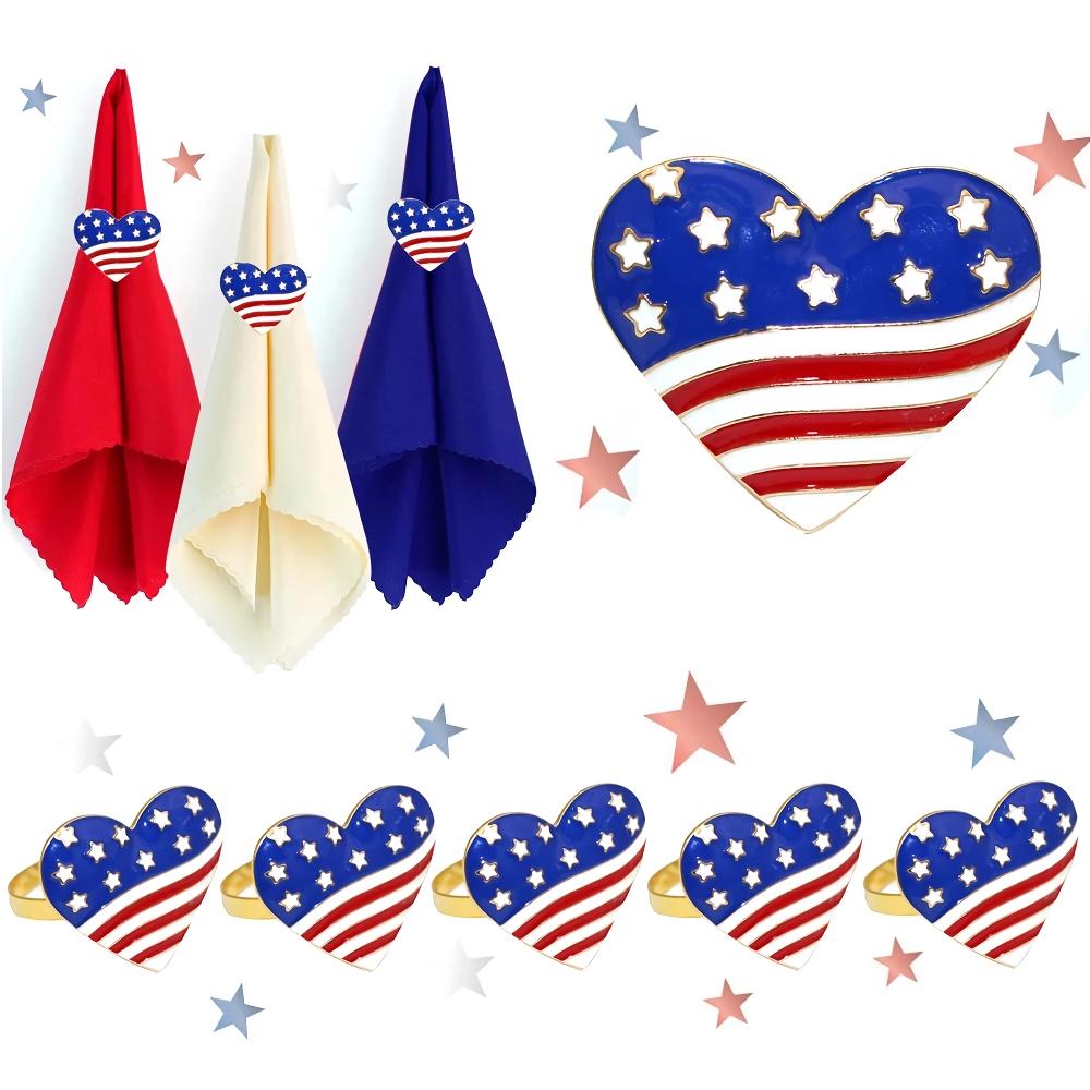 6pcs Set of 4th of July Heart-Shaped Napkin Rings