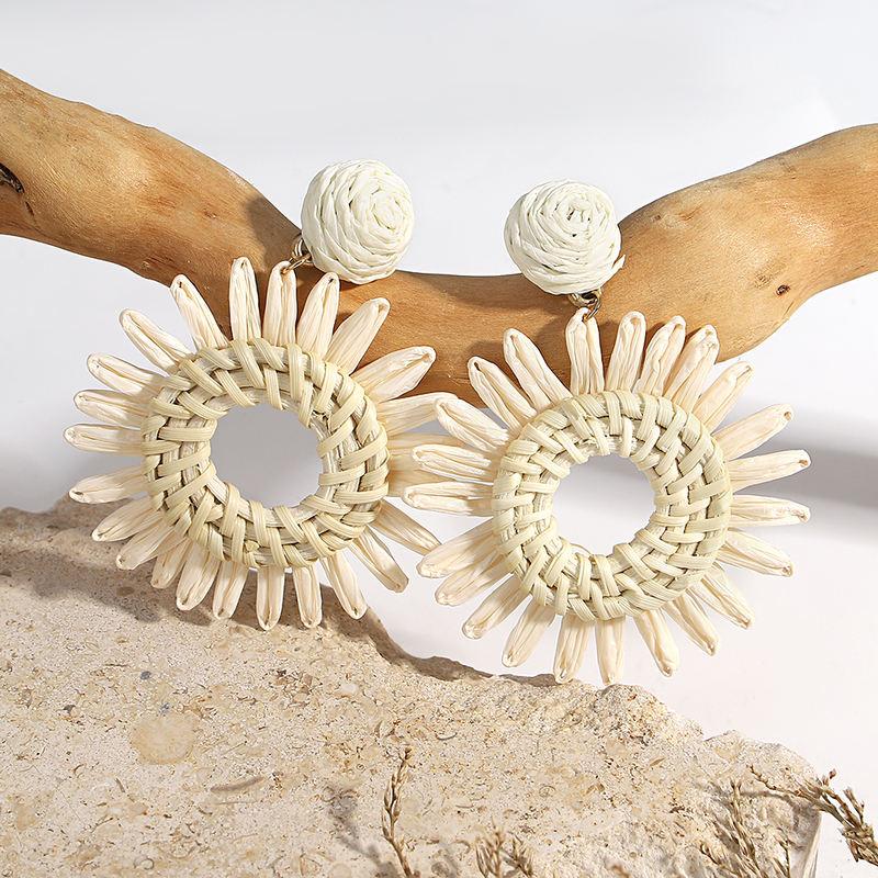These handmade rattan sunflower drop earrings are the perfect addition to your summer wardrobe. Whether you're heading to the beach, a weekend getaway, or a casual day out, these lightweight and stylish earrings will add a touch of boho-chic elegance to any outfit. The intricate hollow sunflower design brings a playful, natural vibe, while the woven rattan texture adds an earthy, artisanal feel that is both trendy and timeless. Perfect for women who love unique, handmade accessories, these earrings are the go-to choice for effortless style and summer vibes.