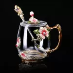Indulge in luxury every time you sip from this exquisite enamel flower glass mug. Whether you're enjoying a hot cup of tea, a refreshing iced coffee, or a delicate herbal infusion, this beautifully designed glass mug transforms any drink into a special occasion. With intricate floral detailing and a transparent glass finish, this mug is perfect for adding a touch of elegance to your daily routine or for impressing guests at special events. The included matching spoon completes the set, making it an ideal gift for weddings, anniversaries, or any celebration.