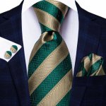 Versatile and Stylish: This necktie set is perfect for business attire, formal events, weddings, and parties. Its classic green striped design adds a touch of elegance to any suit or blazer, making it a versatile addition to your wardrobe.