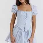 Elevate Your Summer Style with the Elegant Puff Sleeve Corset Mini Dress