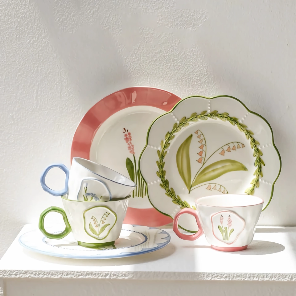 Experience Elegance with Our Hand-Painted Floral Ceramic Plate and Mug Set