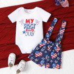 Independence Day Baby Boy Outfit with Patriotic Print Bodysuit and Suspender Shorts