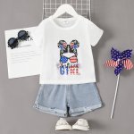 Don't wait to add this adorable set to your cart! Make your little girl’s Independence Day extra special with our Figure Print Tee and Ripped Denim Shorts Set. Perfect for creating memorable moments this summer, this set is a must-have for spirited celebrations. Shop now and let the festivities begin in style!