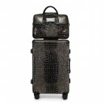 Our luggage set stands out for its unique combination of style, durability, and functionality. The exquisite crocodile print adds a layer of sophistication, while the PVC material offers waterproof and wear-resistant qualities. The reinforced aluminum frame and shockproof design provide peace of mind, ensuring your belongings are safe and secure. With 360° universal spinner wheels and a comfortable handle, maneuvering through crowded airports becomes a breeze. Available in cabin-friendly sizes, this set is ideal for both short getaways and extended travels.