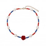 This necklace is more than just a piece of jewelry; it's a statement of your love for your country. Its unique design combines classic elements with a modern twist, making it a must-have accessory for anyone looking to celebrate in style. The adjustable length ensures a comfortable and secure fit, while the high-quality materials guarantee durability and longevity. Perfect for Independence Day celebrations, themed parties, and patriotic events, this necklace adds a touch of elegance and sophistication to any outfit. The rose pendant and smooth beads create a chic and fashionable look that stands out in any crowd. Make a bold statement and show off your American pride with this beautiful choker necklace.