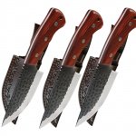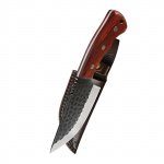 This chef knife combines traditional craftsmanship with modern performance. Each blade is hand-forged for precision, with a hardness of 58 HRC, ensuring a long-lasting, sharp edge that won’t easily dull over time. The high carbon content adds strength, while the stainless steel resists rust and corrosion, making it perfect for a variety of kitchen tasks. The elegant rosewood handle not only adds a touch of sophistication but also provides a comfortable and secure grip, making chopping, slicing, and boning effortless.