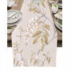 What makes this table runner unique is its captivating design, combining traditional floral elements with modern geometric patterns. This blend creates a versatile piece that complements both contemporary and classic interiors.