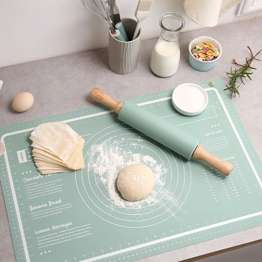 Master Your Baking with the Silicone Kneading Pad & Non-Stick Rolling Pin Set