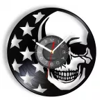 What sets this clock apart is its combination of artistry and functionality. The use of recycled vinyl records not only adds an eco-friendly aspect but also brings a piece of musical history into your home. The detailed laser-cut design showcases exceptional craftsmanship, ensuring that each clock is a piece of art. Additionally, the option for LED lighting adds versatility, allowing you to customize the ambiance of your space with ease. Don't miss out on the opportunity to own this remarkable piece. The Skull USA Flag Gothic Wall Clock is not just a timepiece; it's a conversation starter, a decorative accent, and a tribute to unique style. Click "Add to Cart" now and bring this extraordinary clock into your home.