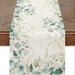 Spring Green Eucalyptus Linen Table Runner