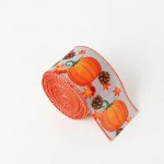 Thanksgiving Autumn Printed Ribbon – Pumpkin & Maple Leaf Ribbon for DIY Crafts and Gift Decoration