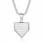 This necklace boasts several standout features that make it a must-have for any collection. The pendant is designed in a geometric shape, mimicking a baseball plate adorned with the American flag. Measuring 24 inches in length, the stainless steel chain offers a comfortable fit that complements any outfit. The classic style of this necklace makes it versatile enough to wear with casual or formal attire, while its compatibility with various looks ensures it will become a favorite piece.