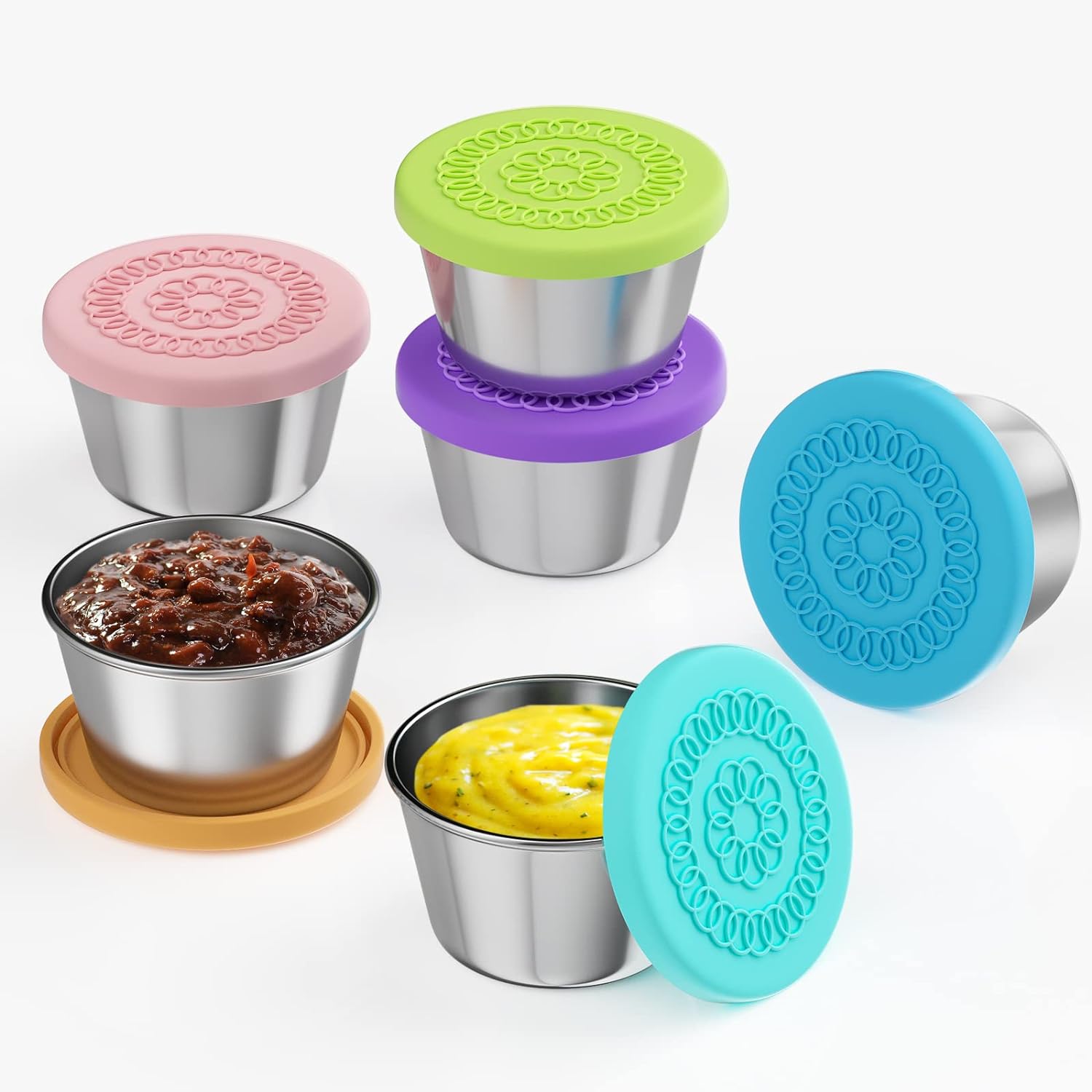 Crafted from premium stainless steel and paired with leakproof silicone lids, these sauce cups are built to last. The high-quality stainless steel ensures durability and resistance to rust, while the silicone lids provide a secure, leakproof seal, keeping your sauces and condiments fresh and spill-free. Each set includes six cups, making it easy to portion out your favorite dips and dressings.