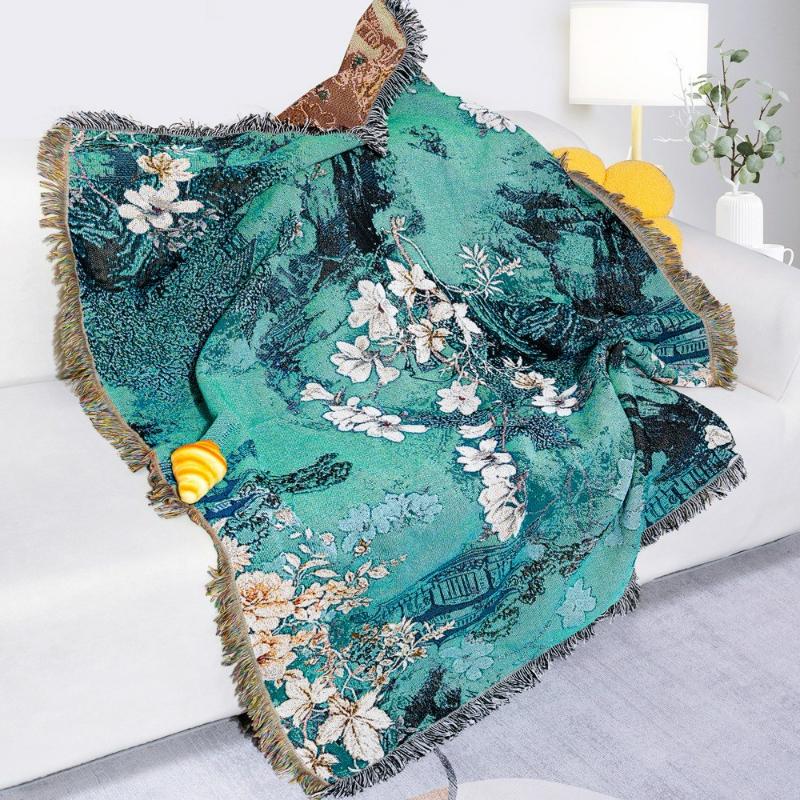 Introducing the Vintage Floral Jacquard Throw Blanket, your perfect companion for adding a touch of sophistication to any space. Crafted with a beautiful blend of polyester and cotton, this blanket combines durability with a soft touch, making it an ideal choice for both indoor and outdoor use. Whether draped over a sofa, laid out at a picnic, or providing warmth on a cool evening, this throw blanket brings both style and function to the forefront.