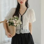 Discover the perfect blend of vintage charm and modern style with our Lace Puff Sleeve V-Neck Shirt. Ideal for those who adore the timeless elegance of French streetwear, this top is a must-have for your summer wardrobe. Whether you're heading to a casual brunch or a stylish street outing, this shirt guarantees a fashion-forward look.