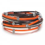 Don’t miss out on this unique and stylish piece. Add the Vintage Rhinestone Pumpkin Leather Wrap Bracelet to your collection and let your Halloween spirit shine in style.